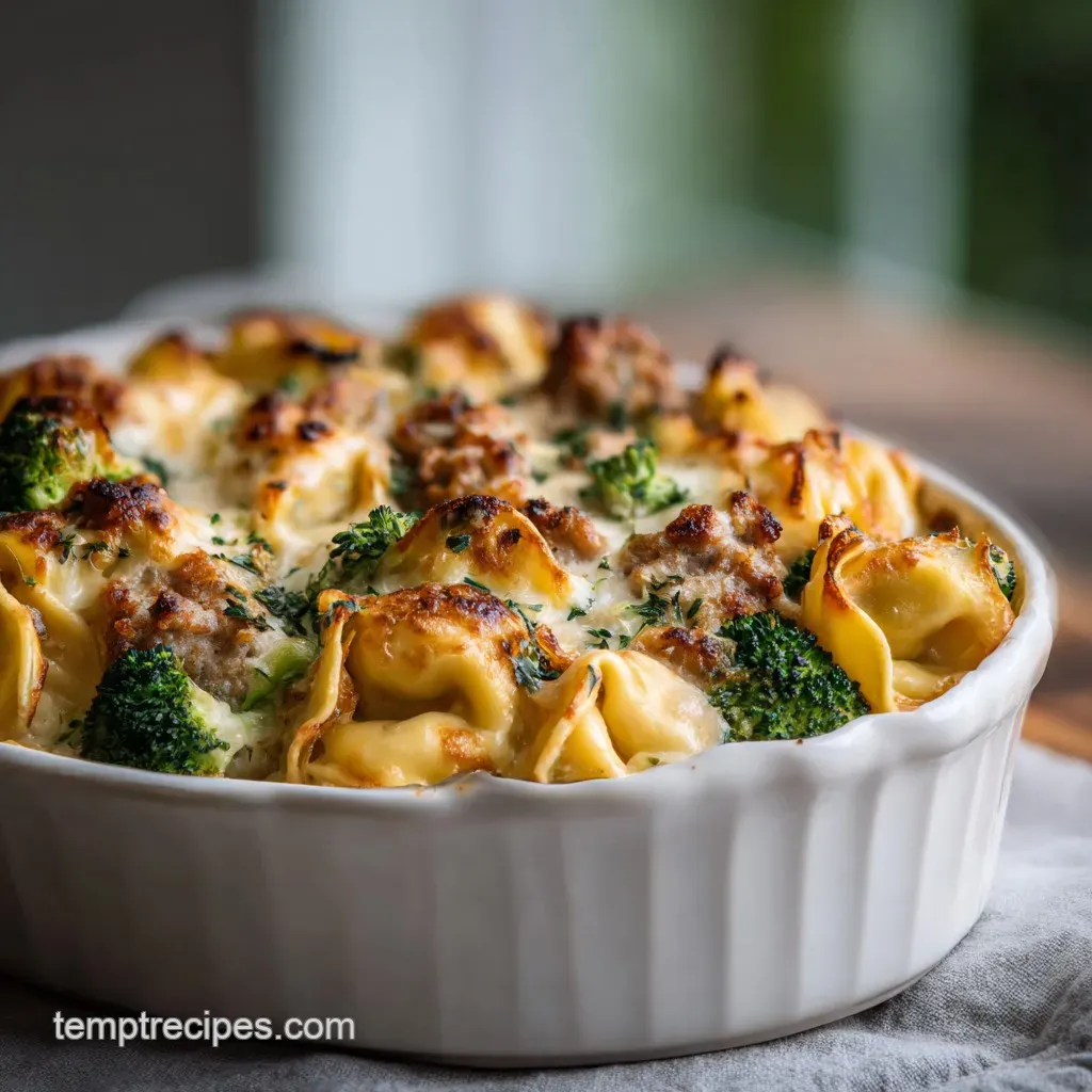 If you are using a convection oven (fan forced), reduce the temperature to 375°F (190°C). The fan circulates the hot air much faster, which can cause the cheese and the tips of the broccoli to brown too quickly before the center of the tortellini is fully heated through.
